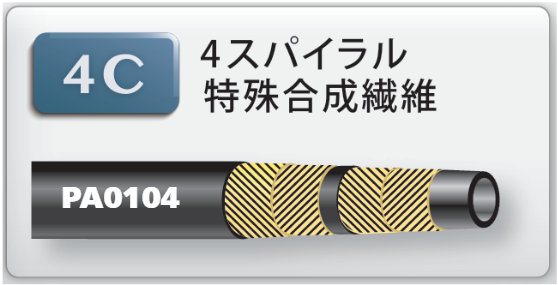 『パスカラートシリーズ』は、鉱物性作動油用のゴムホースです。寿命、耐疲労性を重視しており、また小さい曲げ半径により、コンパクトな油圧配管ができます。内管は耐油性合成ゴム、外被は耐候性合成ゴムと耐摩耗耐候性合成ゴムでできており、ポンプ定格圧力1.5~34.5MPaまでの9ランクがあります。