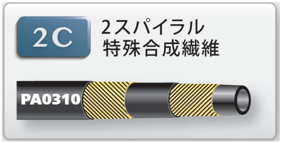 『パスカラートシリーズ』は、鉱物性作動油用のゴムホースです。寿命、耐疲労性を重視しており、また小さい曲げ半径により、コンパクトな油圧配管ができます。内管は耐油性合成ゴム、外被は耐候性合成ゴムと耐摩耗耐候性合成ゴムでできており、ポンプ定格圧力1.5~34.5MPaまでの9ランクがあります。