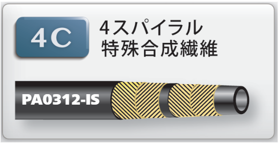 『パスカラートシリーズ』は、鉱物性作動油用のゴムホースです。寿命、耐疲労性を重視しており、また小さい曲げ半径により、コンパクトな油圧配管ができます。内管は耐油性合成ゴム、外被は耐候性合成ゴムと耐摩耗耐候性合成ゴムでできており、ポンプ定格圧力1.5~34.5MPaまでの9ランクがあります。