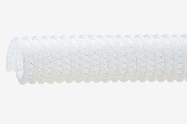 食品、添加物等の規格基準(厚生省告示第370号)に適合。〔但し、油脂及び脂肪性食品に対する溶出試験は除外しています。〕 。ポジティブリスト対応。熱湯洗浄(短時間・指定温度以下)、95%エタノール洗浄ができるので衛生的。柔軟性があって曲げやすい。脱塩ビのサクション・デリバリーホース。オリジナル継手「しめTAC」対応(φ32を除く)。使用温度範囲は0~50℃を目安としてください。連続使用の場合は40℃以下としてください。許容圧力は使用温度、取付方法によって変わりますのでご注意ください。食品用途で、油分が含まれる食品や液体の輸送には適していません。半透明で輸送物の確認ができ、柔軟性があり、楽に作業ができます。補強コード入りで許容圧力.5MPa(5.1kgf/cm2)の耐圧性能をもちます。