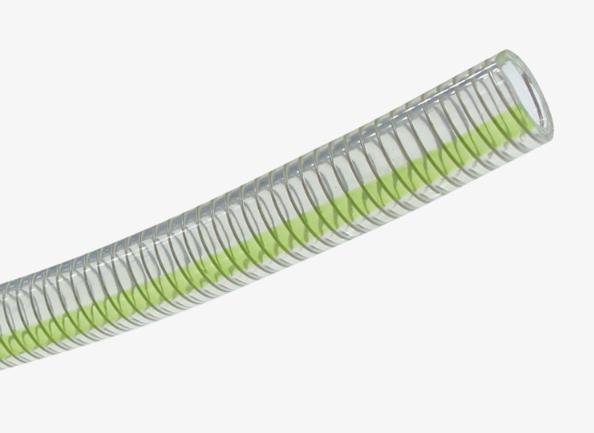 ホース内面に4フッ化系フッ素樹脂( 変性ETFE ) を使用。耐薬品性、非溶出、非粘着、低臭などの特性を活かし、化学、薬品、純水、化粧品、食品、半導体などの設備配管用ホースとして使用可能です。従来のフッ素スプリングホースに比べ、最大半分の力で曲げることができ、狭所配管に最適です。非粘着性・撥水性に優れた内面( 撥水角96° )で、流体が残りにくく、ホースの内面に汚れがつきにくいので洗浄作業が簡単です。他の樹脂に比べ、匂いや味の変化が少なく、食品や飲料への臭い( 匂い )移りを防止できます。透明度が高く、ホースの内面に汚れがつきにくいので、中の流体が確認できます。